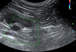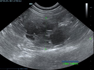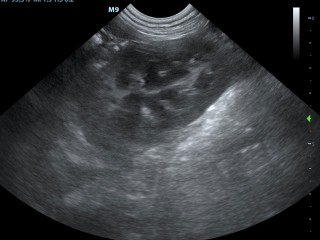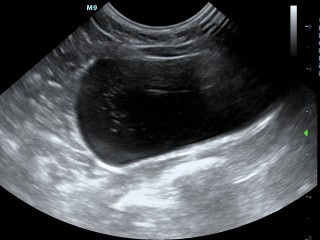 Hieronder zie je een aantal foto's van de buik met achtereenvolgens; blaasontsteking, blaastumor, vroege dracht hond 19 dagen, vergrote eierstok, lever, nier.